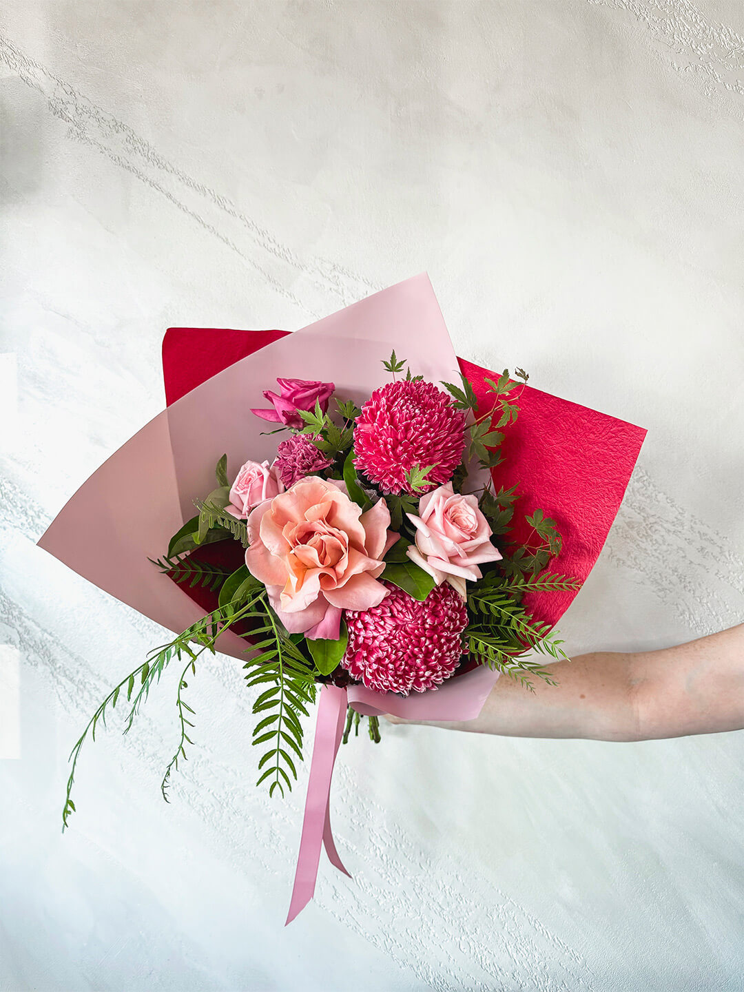 This bouquet is finished with a beautiful wrap and ribbon ready for gifting.